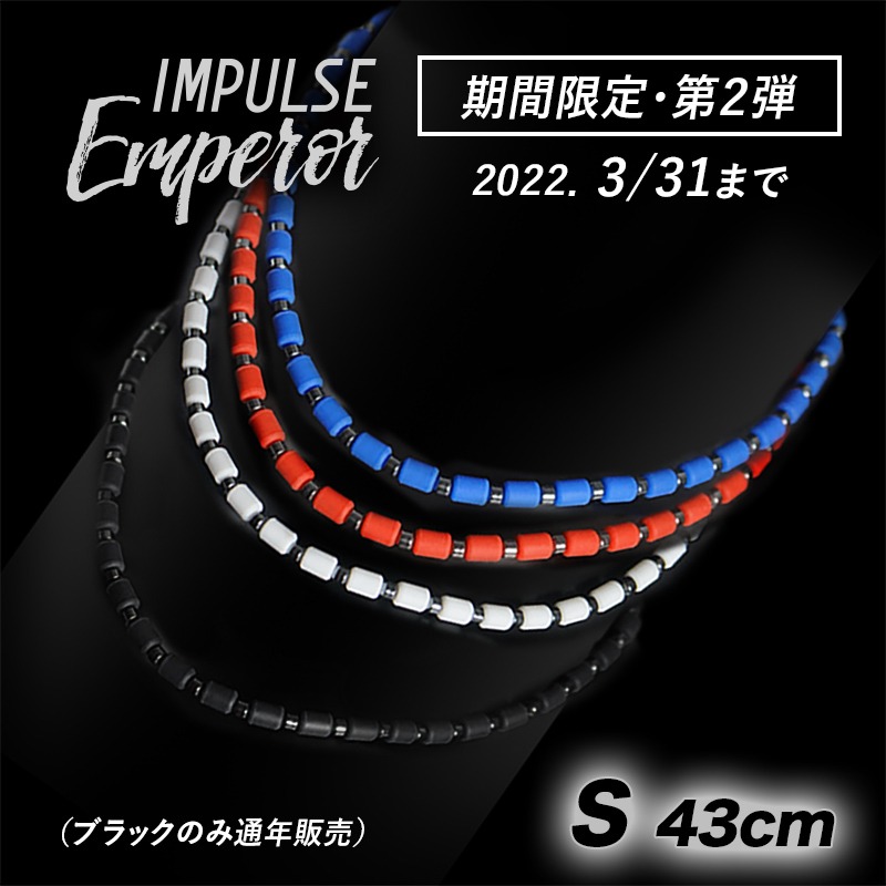 「エンペラー」の接合パーツには、重厚感のある天然石のヘマタイトを採用。 「勝利へ導く石」とも呼ばれており、アスリートにぴったり。 パワーストーンとしてネックレスに使用されるなどして広く知られ、一説によれば、ネックレスとして首につけることで脳への酸素活用・赤血球の働きを活性化・全身への酸素供給量上昇が期待されるなどといわれている。